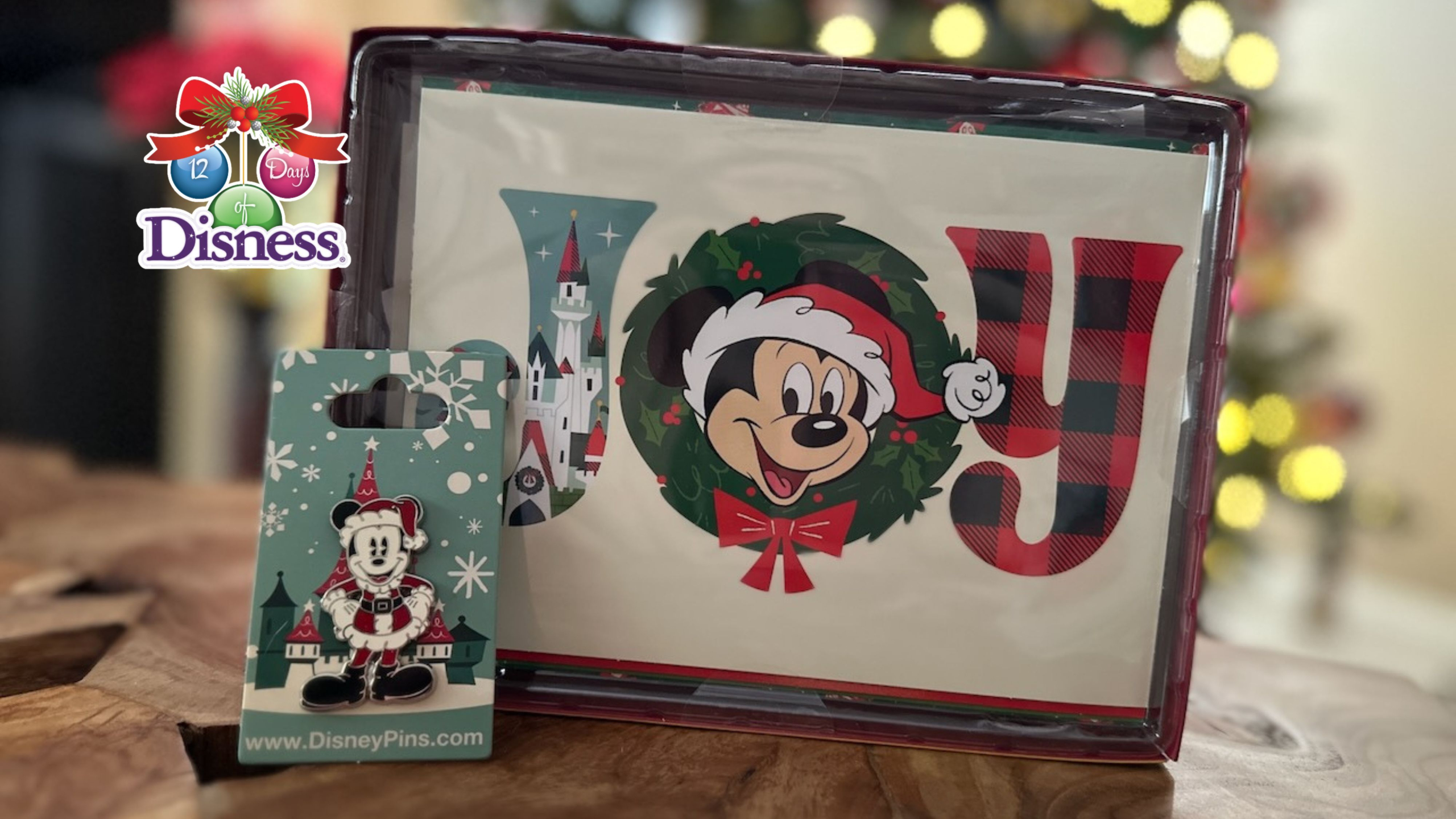 Set of 16 Christmas Cards (with stickers) and Santa Mickey Pin