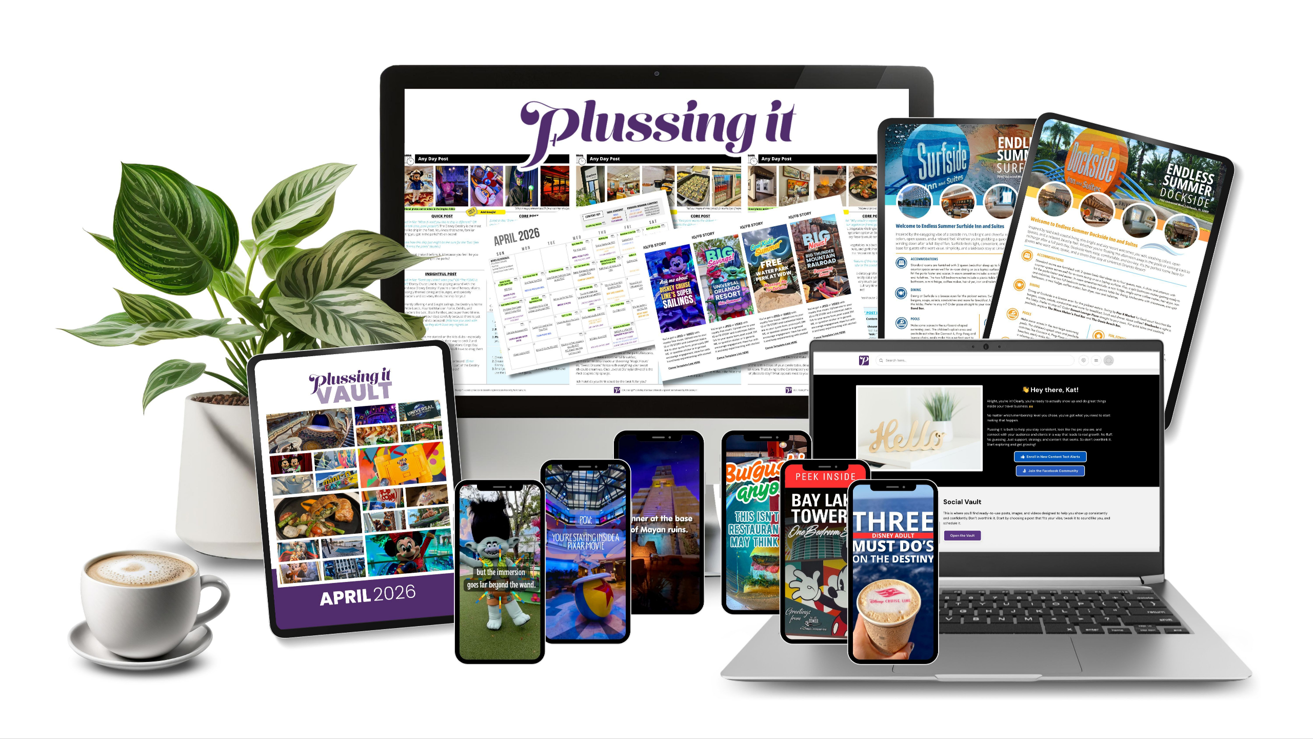 Plussing It® gives you content that’s built from real experience, real strategy, and what actually works to engage, so when you show up, it’s not just consistent, it's authentic and credible. Our team is in the parks, on the ships, booking, planning and strategizing ALL. THE. TIME.
